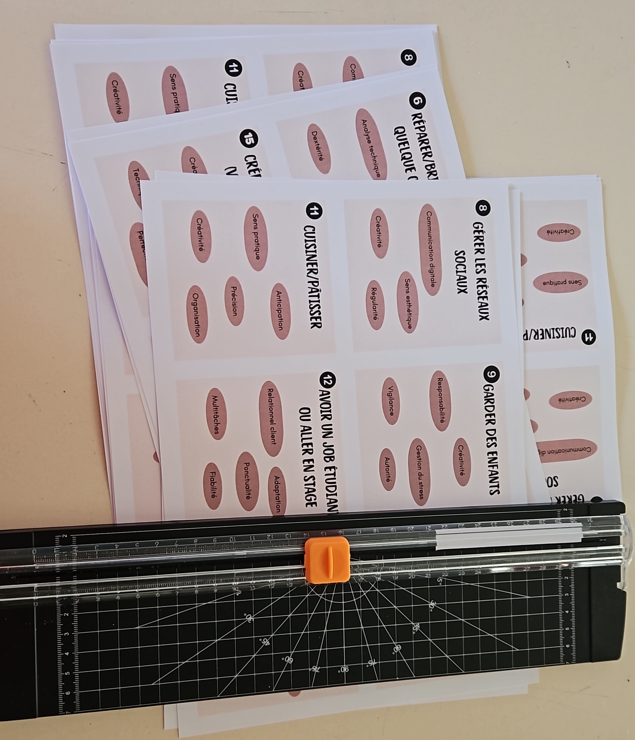 En petits groupes, les élèves partagent leurs expériences. À l'aide de "cartes décodeur" fournies, ils apprennent à "traduire" leurs actions en compétences professionnelles (relationnelles, organisationnelles, etc.). Chaque élève repart avec une liste personnalisée de 8 à 10 compétences, illustrées par des exemples précis. Les pairs révèlent des compétences que l'élève n'aurait pas forcément identifiées seul.PHASE 3 : Construction du CV (50 min)